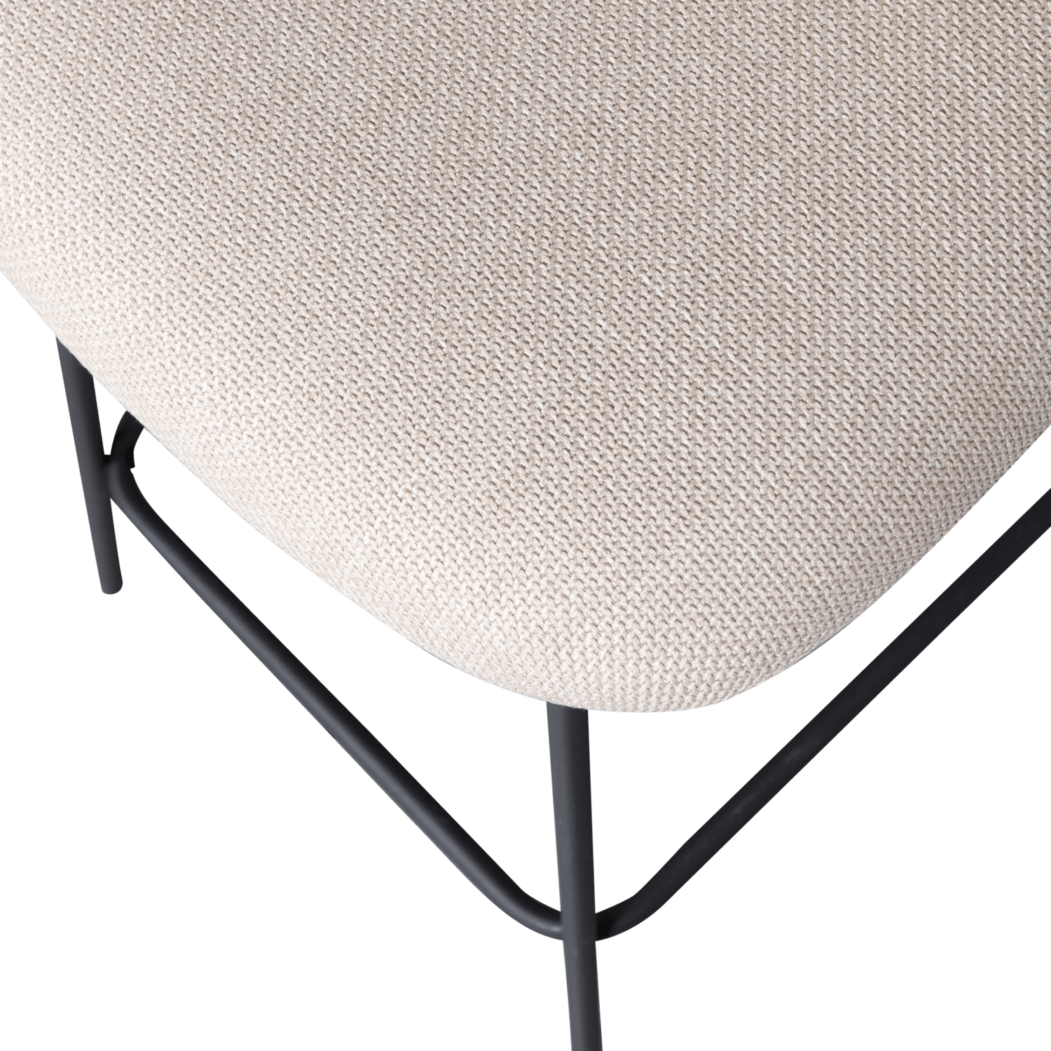 Tato barová židle se vyznačuje stylovostí, ale zároveň jednoduchostí. Židle má štíhlou kovovou podnož v černé barvě. Sedák je čalouněný hustou tkanou látkou s barevnými odstíny. Díky vypouklému opěradlu v kombinaci s látkou je Kjel příjemný a pohodlný na sezení.