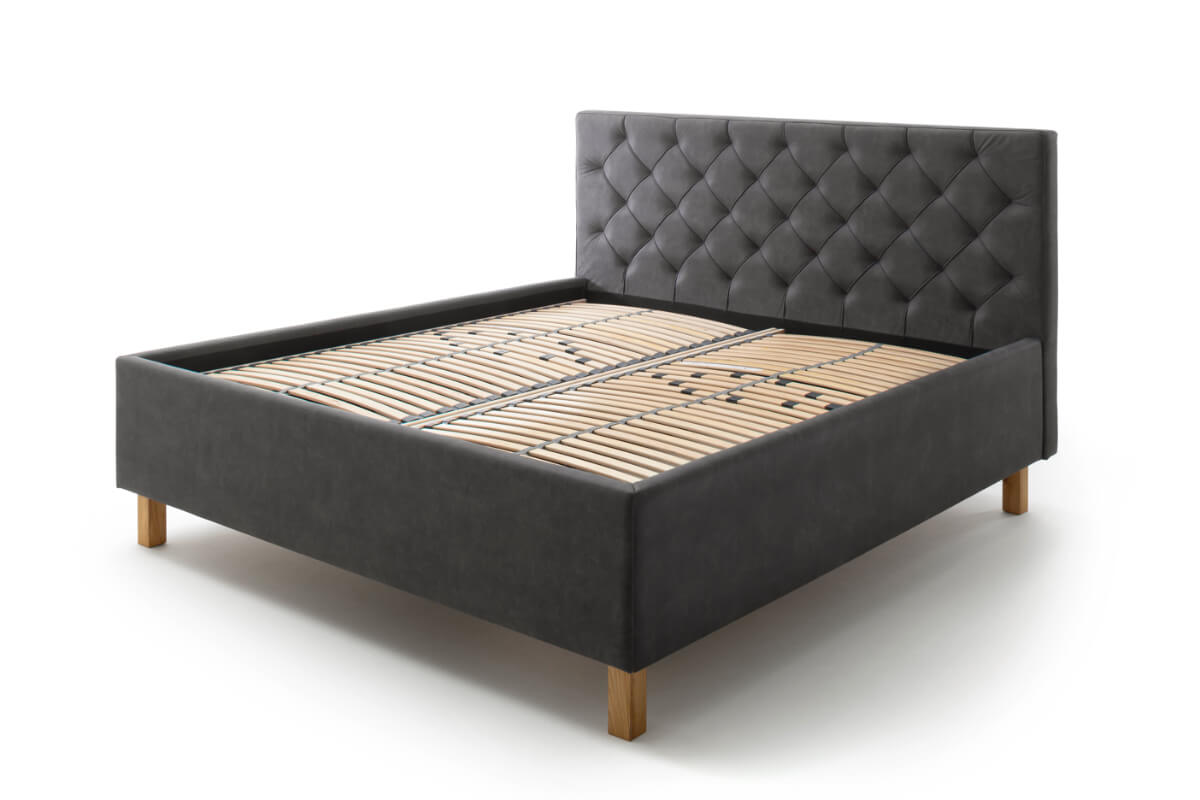 Kvalitní rošty se skládají z 28 lamel, jejich tvrdost je nastavitelná a lze je otevřít do strany. Pod rošty jsou odvětrávané ložní boxy, kam můžete uložit spousty věcí, abyste v ložnici ušetřili místo. Hloubka vložení matrace (s roštem) je přibližně 7 cm.