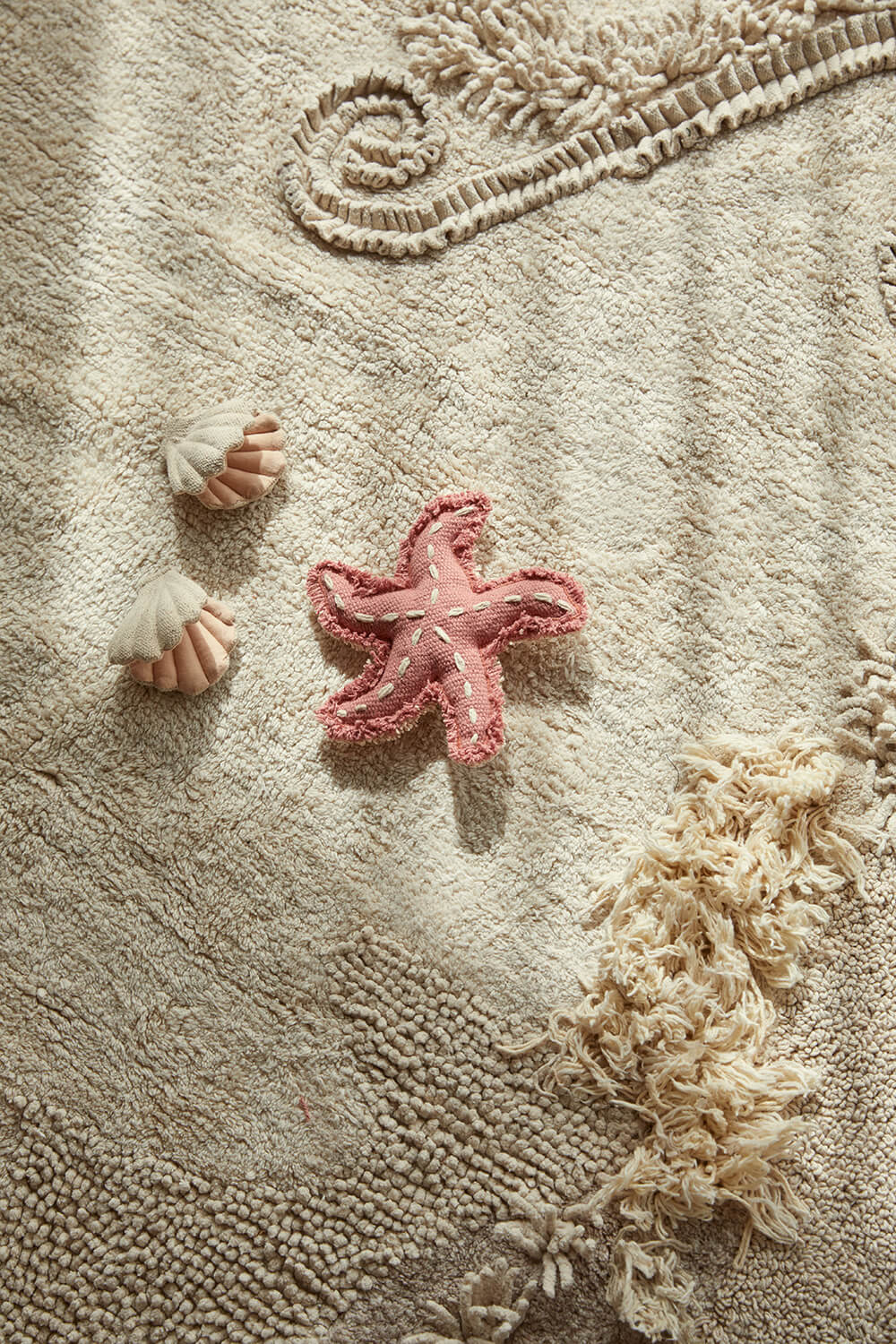 Péče: Koberec perte samostatně v pračce v jemném programu na 30 °C bez bělení. Používejte jemný prací prostředek a nepoužívejte změkčovadla. Pokud má koberec copánky, třásně nebo bambulky, zvolte nízké otáčky odstředění. Nenechávejte mokrý koberec v pračce, protože by mohlo dojít ke stékání barev nebo vzniku skvrn. Sušte v sušičce při nízké teplotě. Nesušte na slunci. Prát můžete také ručně ve vlažné vodě, používejte neutrální prací prostředek. Nebojte se, pokud se objeví žmolky, protože se jedná o zbytky vláken vzniklé při stříhání bavlny. Během prvních dnů je vhodné koberec zamést měkkým kartáčem ve směru plyše a poté se doporučuje použít vysavač. Nepoužívejte robotické vysavače ani vysavače s šlehacími tyčemi. Pokud najdete dlouhé nebo volné nitě, přestřihněte je nůžkami. Nikdy netahejte za nitě.