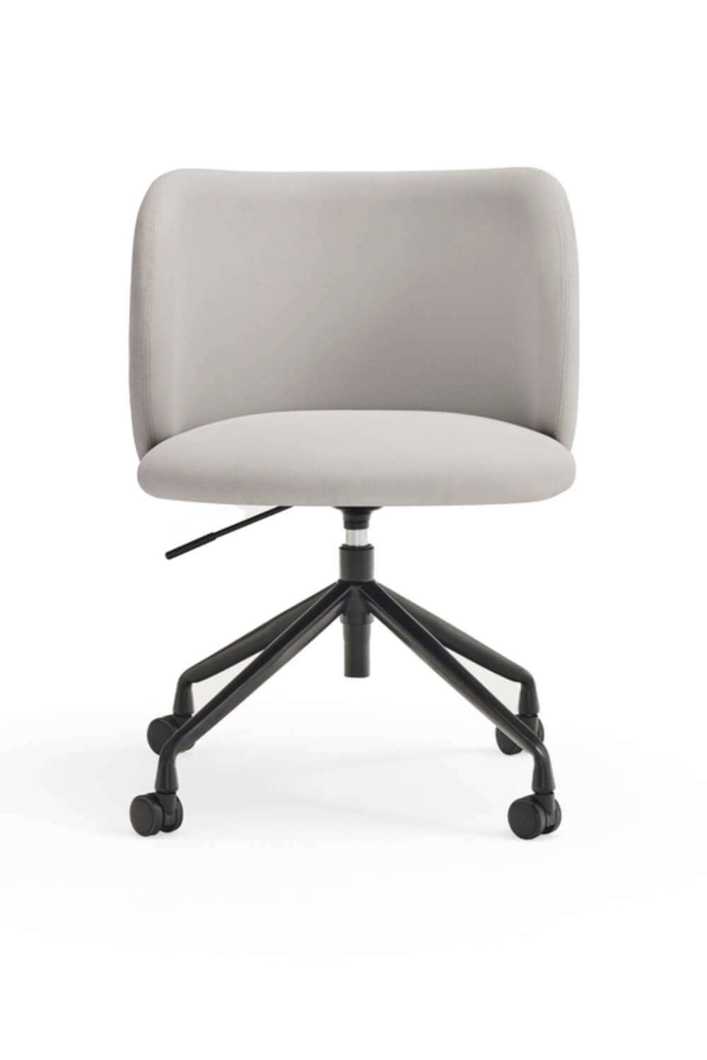 Jednoduchá a praktická kancelářská židle, která je ideální pro pracovní stůl doma i v kanceláři. Díky pevné konstrukci a použití kvalitních materiálů poskytuje spolehlivou oporu při každodenním sezení.
