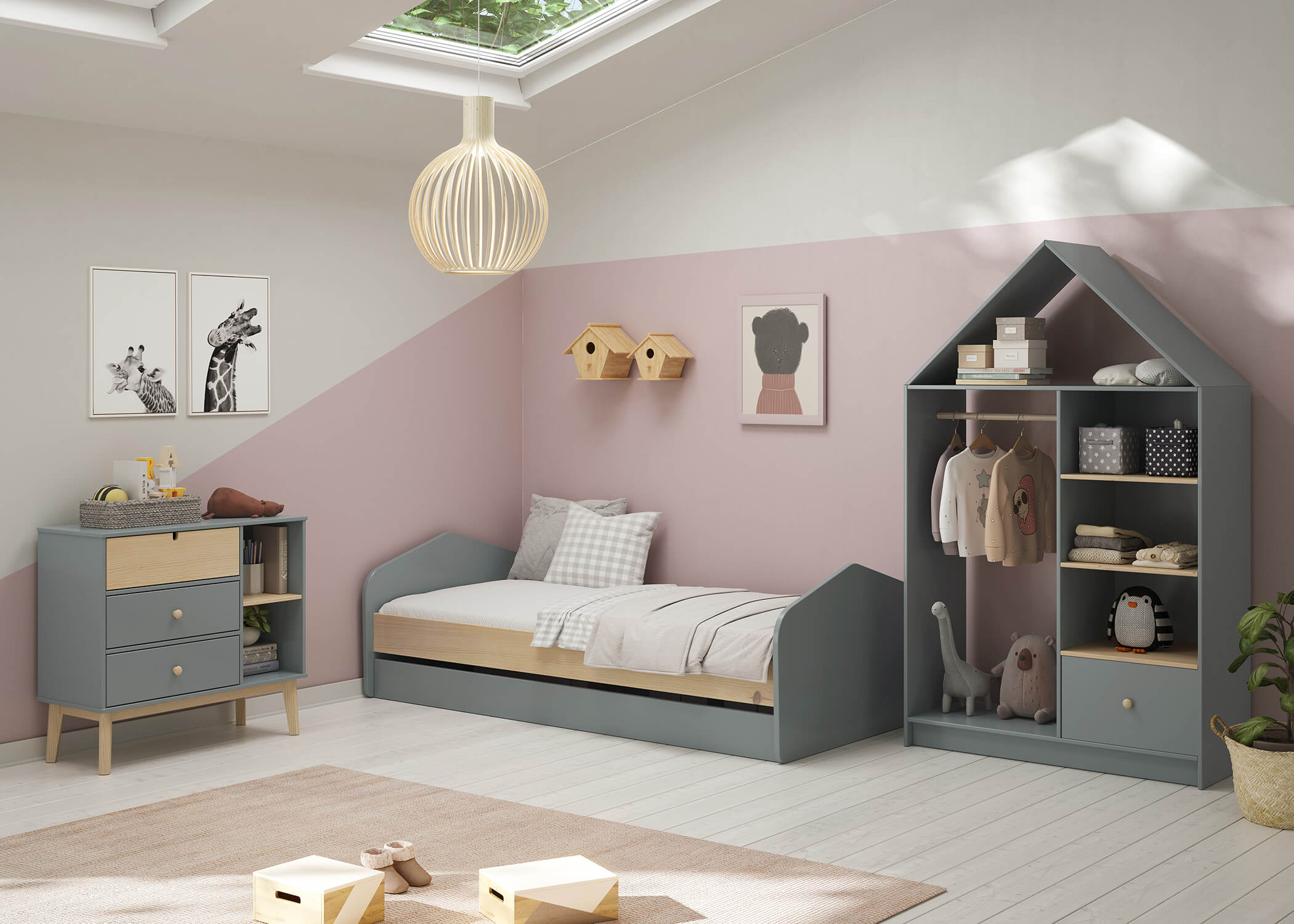 Tato dětská kolekce nábytku kombinuje přírodní materiály s jemnou zelenou barvou, vytvářejíc tak unikátní design. Dětskému pokoji dodá svěží a hravý vzhled, zatímco její pevná konstrukce zaručuje bezpečnost a dlouhodobou trvanlivost. Kolekce je tak ideální volbou pro rodiče, kteří hledají kvalitní a stylový nábytek pro své děti.
