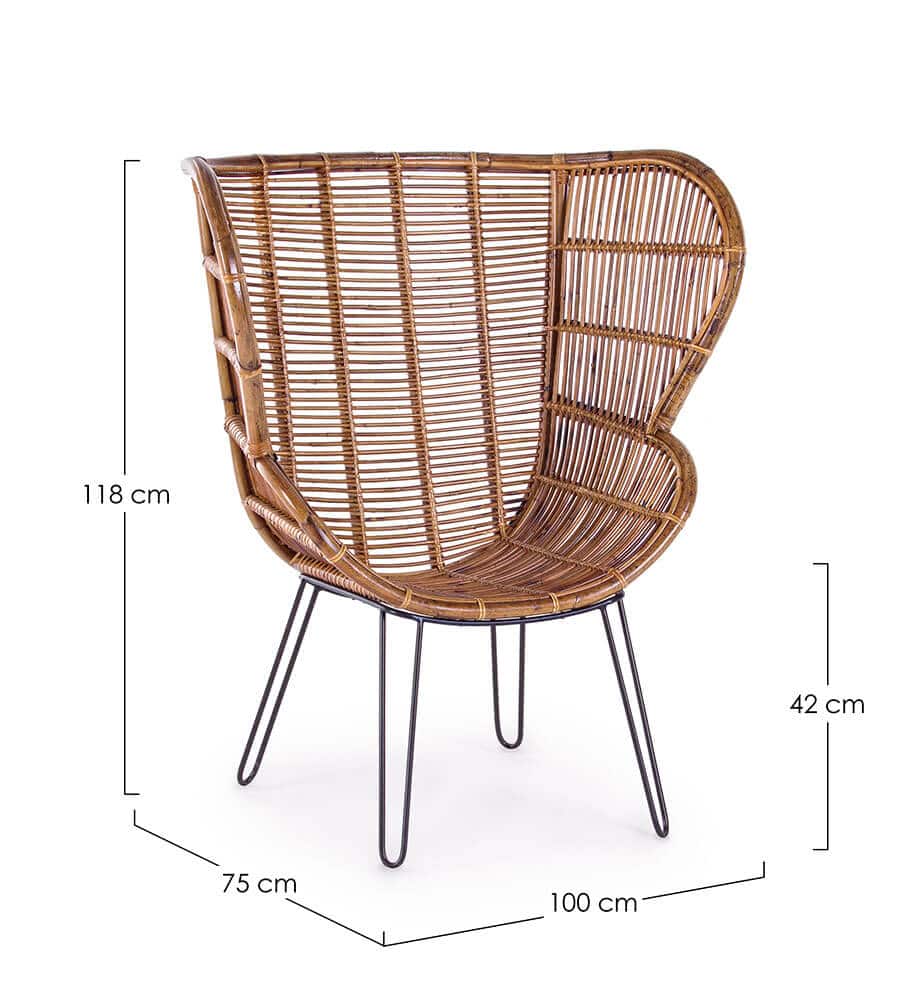 Ratanové křeslo s melaminovou povrchovou úpravou a ocelovými nohami. Nevystavujte křeslo přímému slunečnímu záření a špatnému počasí.
