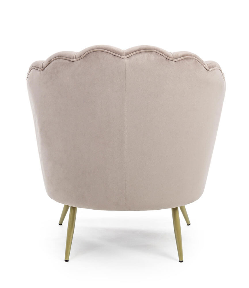 Křeslo Giliola se zlatými nohami a rámem z borového dřeva je čalouněné polyesterem se sametovým vzhledem.