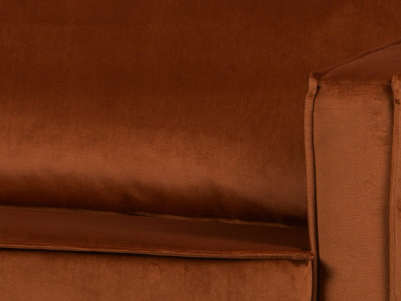 Křeslo Rodeo s černýma nohama z kovu a pohodlným sedákem je čalouněné 100% polyesterovou sametovou tkaninou.