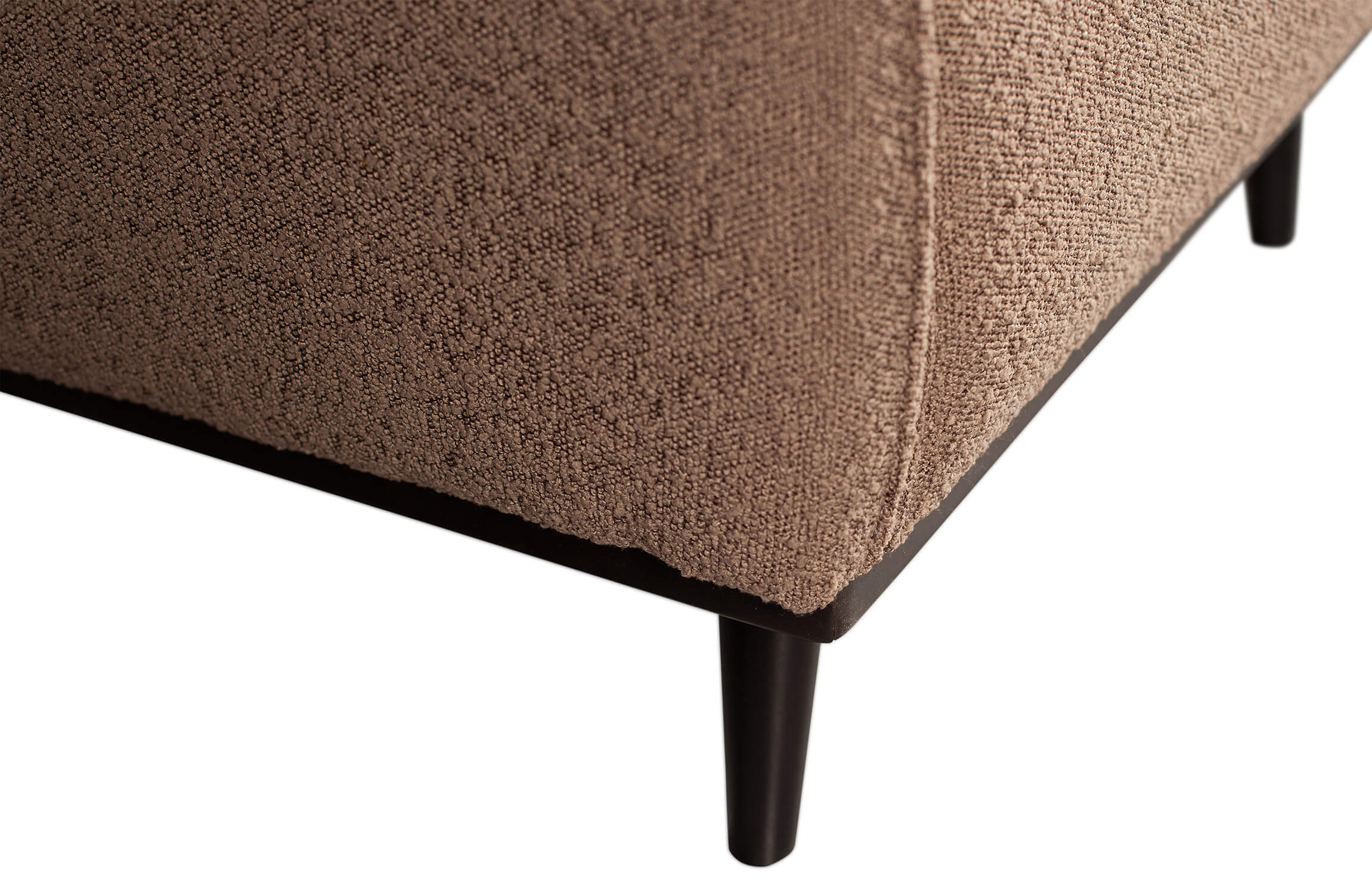 Křeslo má přátelské, měkké tvary a je vybaveno vysokou loketní opěrkou, takže se v něm velmi pohodlně sedí. Čalouněná látka bouclé (100% PES) v nugátové barvě, židli dodává elegantní vzhled. Křeslo Statement je k dispozici v několika látkách a barvách.