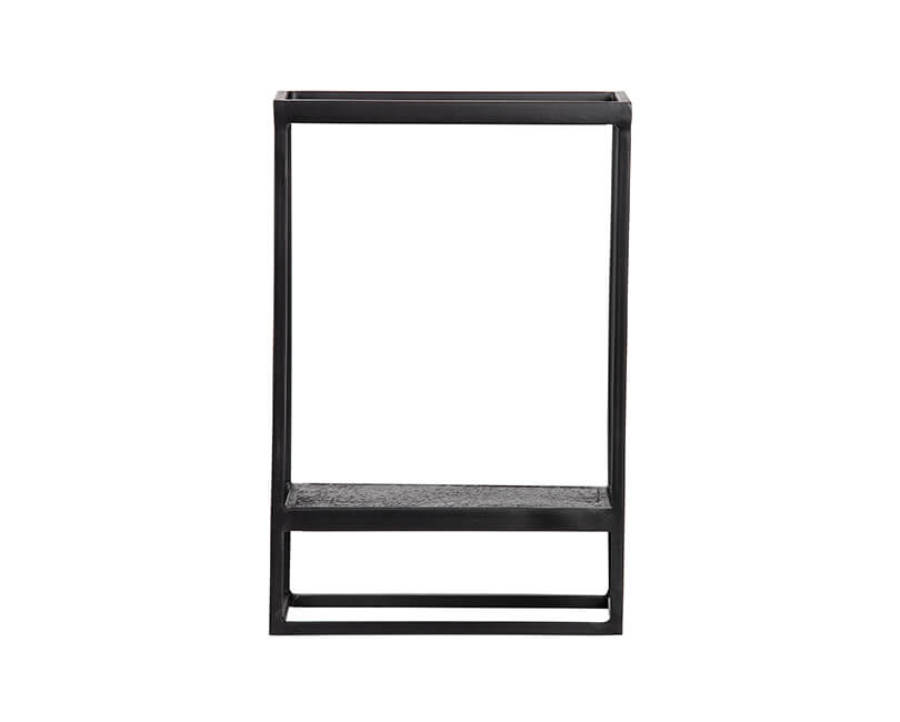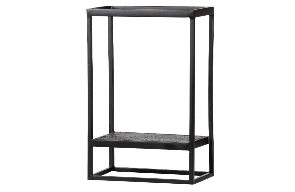 Černý kovový nástěnný stojan Febe je moderní a praktický. Z důvodu ochrany proti UV záření lze tento stojan použít i venku za normálních povětrnostních podmínek. S dvěma závěsnými háky lze stojan snadno zavěsit.