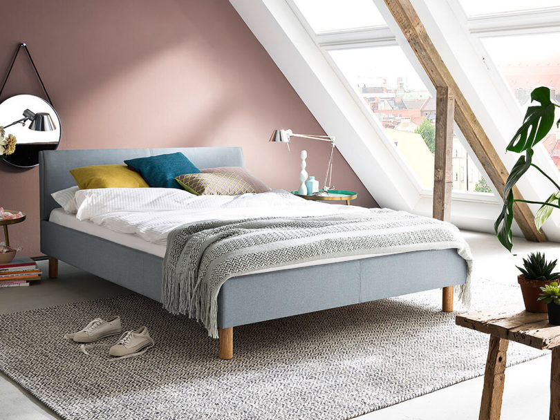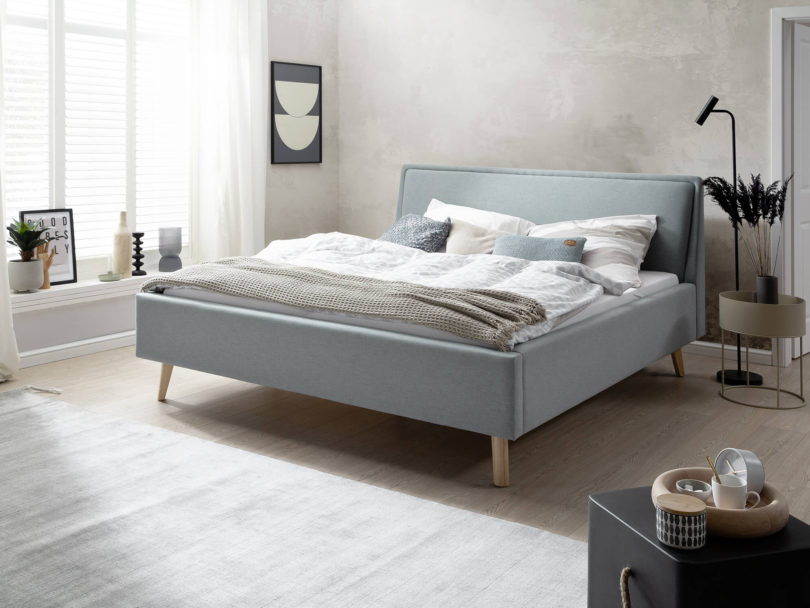 Elegantní postel Taupe v severském designu opravdu upoutá pozornost. Rám postele je po celém obvodu polstrovaný jemně strukturovanou tkaninou a vytvoří tak útulnou atmosféru ve vaší ložnici. Mírně šikmé nohy z masivního dřeva zajišťují vysokou stabilitu a dodávají čalouněné posteli moderní vzhled. Vzniká díky nim vzdálenost 18 centimetrů od podlahy, která může v případě potřeby sloužit jako další úložný prostor. Všechny dostupné barvy látky v kombinaci se světlými dřevěnými nohami dodávají posteli unikátní kouzlo.
