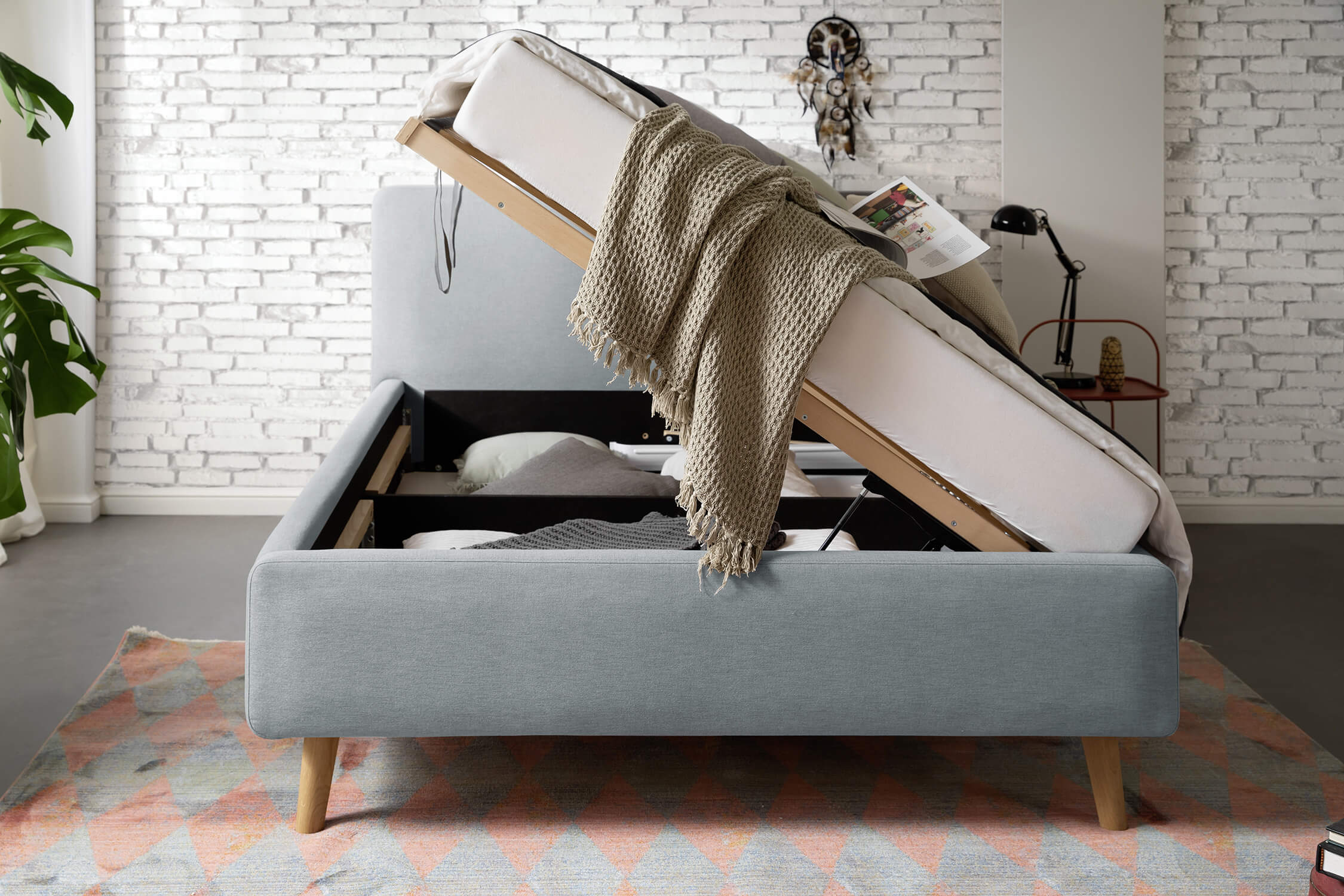 • Postel taupe s úložným prostorem 140 x 200 cm světle šedá