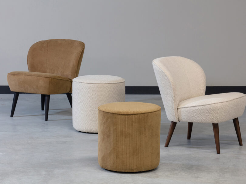 Sara je čalouněna sametovou látkou (100% polyester) v malinové barvě. Nohy pod stoličkou jsou vyrobeny z plastu. Má výšku sedáku 46 cm a hloubku sedáku 46 cm. Sara má pohodlné sedadlo a sametovou látku se 100 000 Martindale.