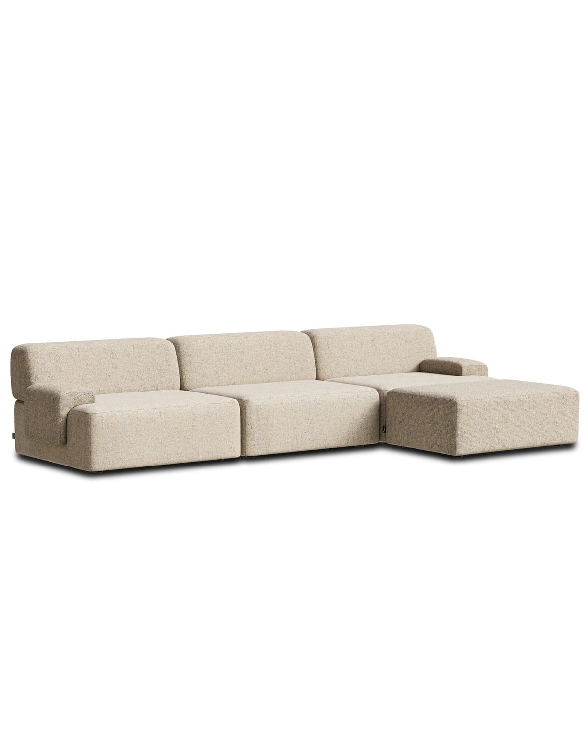 Tato sestava se skládá z trojmístné pohovky a samostatného pufu, který lze podle potřeby připojit z levé nebo pravé strany a vytvořit tak pohodlné rohové sezení. Puf můžete ale také nechat volně v prostoru – jako podnožku nebo extra místo k sezení. Roh si tak určujete sami podle dispozice svého interiéru.