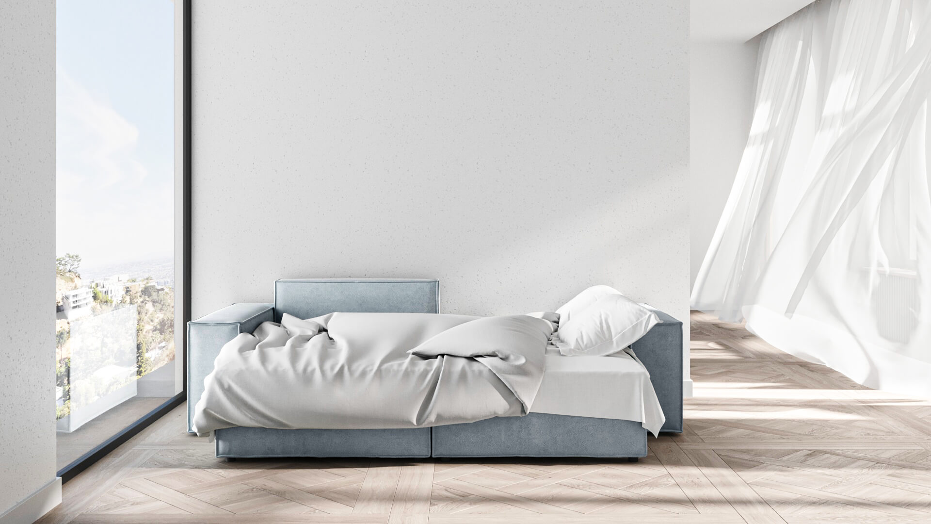 Rohová rozkládací pohovka melow 250 cm světle modrá
