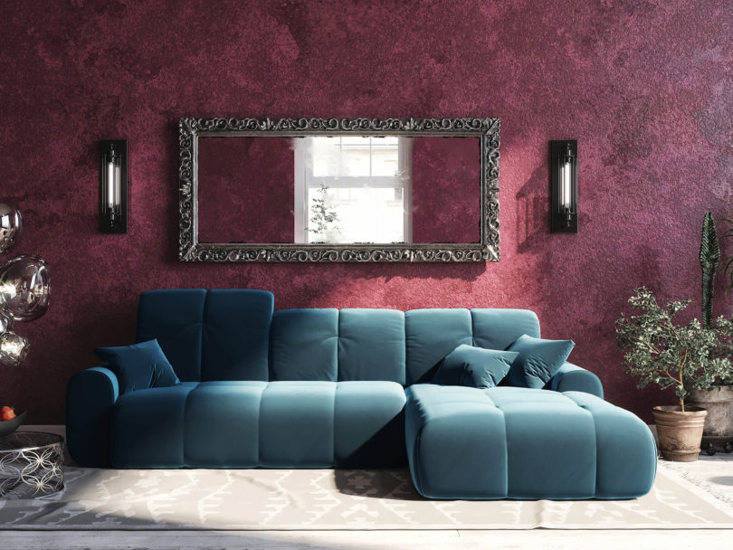 • Rohová rozkládací pohovka rothe pravá 302 x 237 cm samet modrá