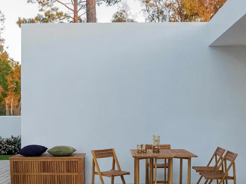 Akáciové dřevo, povrchová úprava olejem, šrouby z pozinkované oceli.