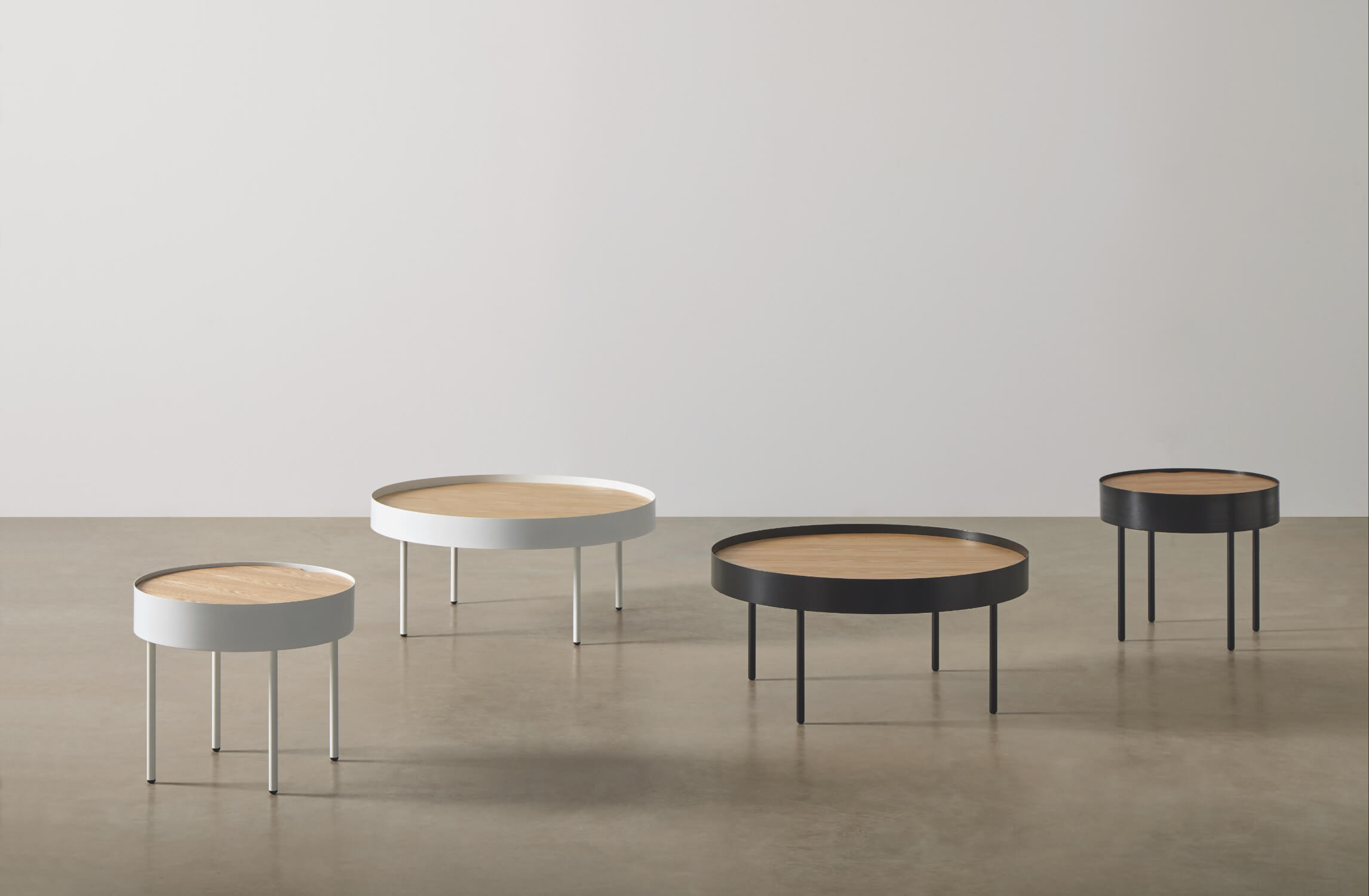 Sada konferenčních stolků s deskou z recyklovaného dřeva a matně lakovanými železnými nohami. Dobrá volba pro dodání etnického nádechu.