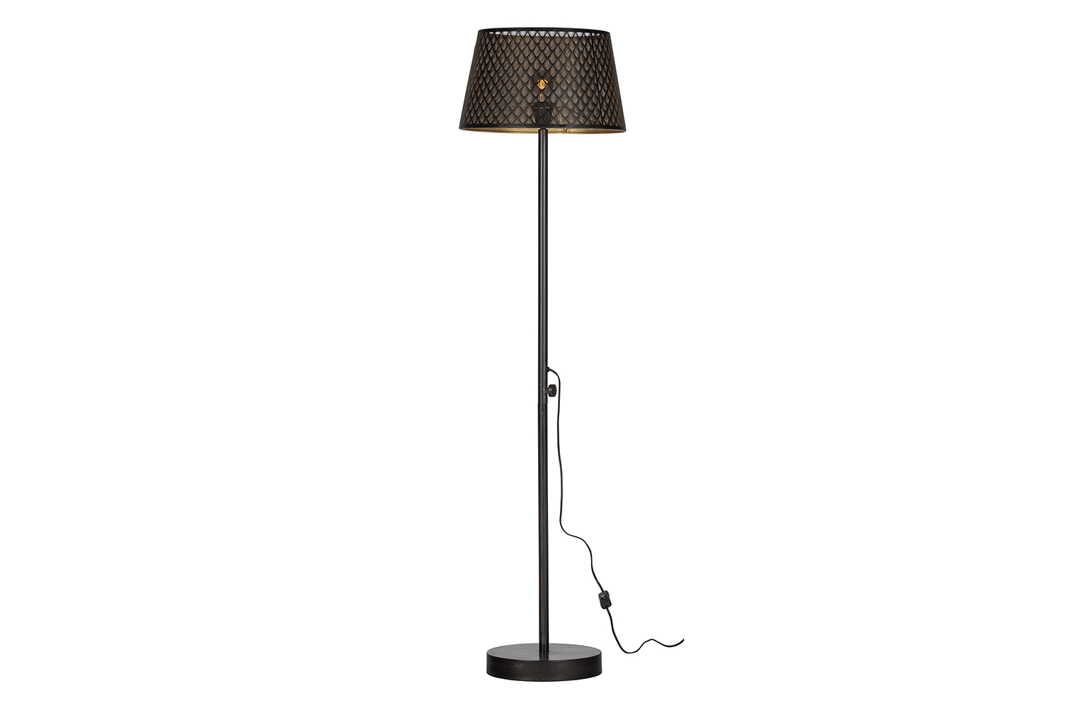 S touto stojící lampou Kars získáte do svého domova speciální světelný bod. Základna i stínidlo jsou vyrobeny z kovu s matným černým povrchem. Vnitřek stínidla je však skutečným překvapením, starožitný mosazný povrch poskytuje luxusní jiskru. Výřezy ve stylu art deco poskytují hravé šíření světla, které se krásně projeví na vaší zdi nebo v rohu.
