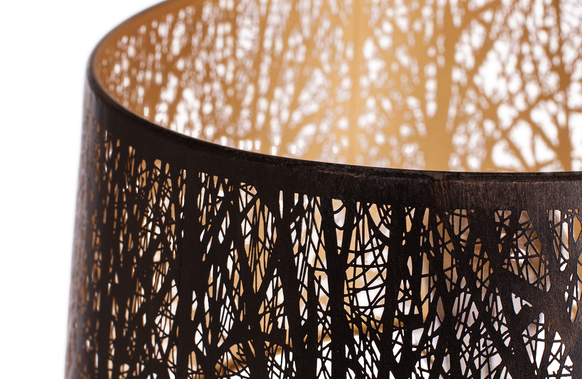 Lampa Keto pochází z kolekce nizozemské značky WOOOD Exclusive. Keto je stojící lampa s ocelovým stínidlem se starožitným černým povrchem a na vnitřní straně se starožitným mosazným povrchem. Stínidlo má vyřezávaný vzor stromu / větví. Prostřednictvím výřezu ve stínítku šíří Keto hravé světlo.