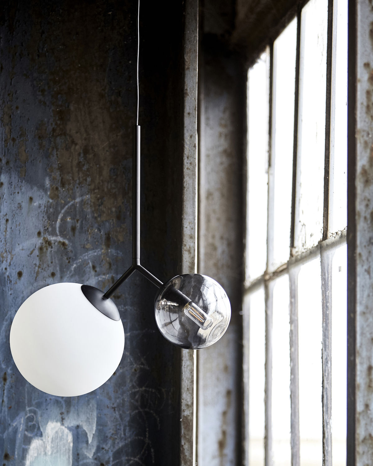 Jak již název napovídá, tato lampa je navržena se zaměřením na dvě skleněné koule – jedna z nich je průhledná skleněná koule a druhá bílá koule. Twice také sestává z černé železné tyče, měří 70 cm na délku a je dodávána s kabelem 3 m. Používejte lampu jako dekorativní součást vašeho domova a nechte ji mluvit za sebe. Zavěste ji nad konferenční stolek jako útulný zdroj světla. Tento produkt je vyráběn ručně, což znamená, že se mohou objevit rozdíly v barvě, velikosti a tvaru. Čistěte suchým hadříkem.