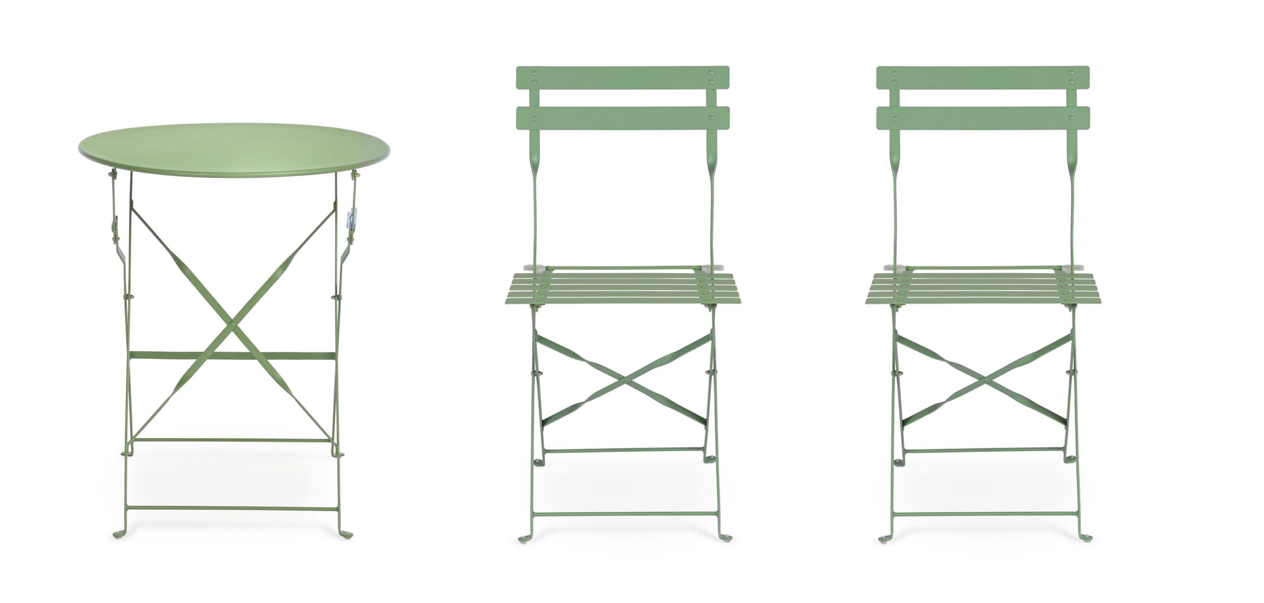 Praktický zahradní set složený ze dvou židlí a stolu je ideální volbou pro posezení na balkoně, terase či v menší zahradě. Všechny části setu jsou skládací, což usnadňuje jejich skladování i manipulaci.
