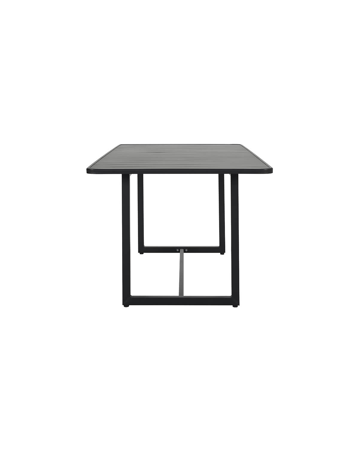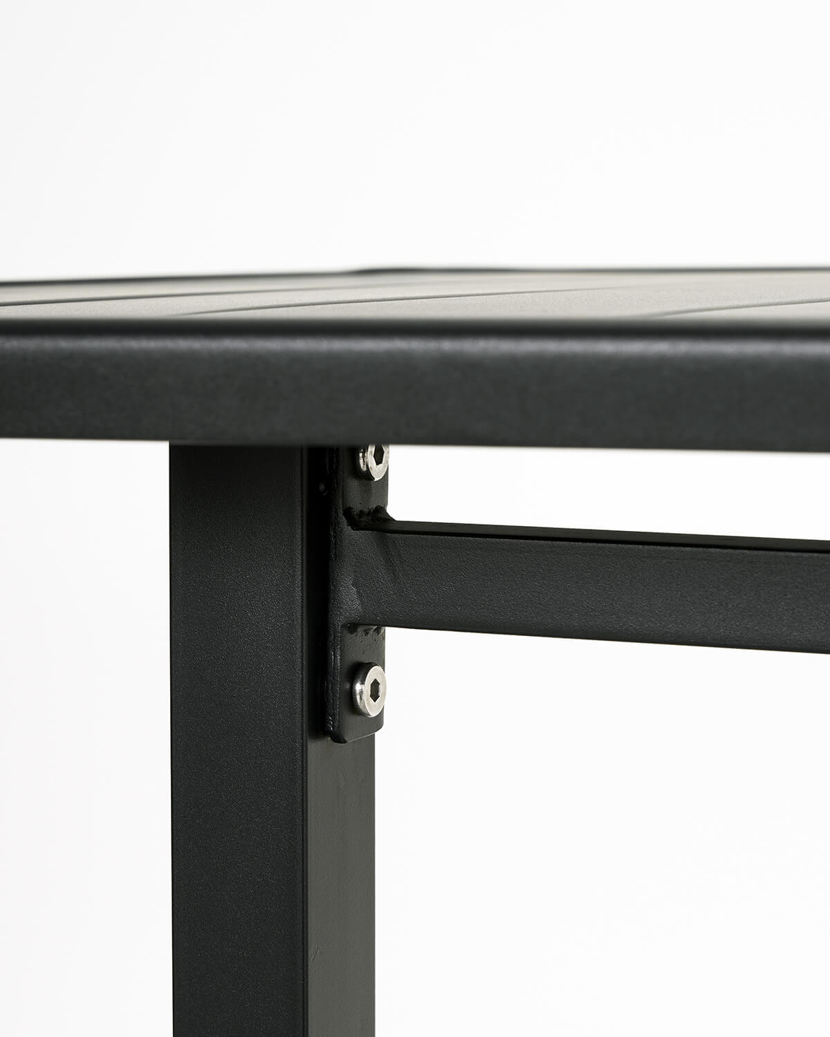 Velký stůl Hallo dodá vašemu venkovnímu prostoru neformální nádech. Matný černý práškový lak dotváří železný stůl tak, aby byl nadčasový a vhodný pro jakýkoli styl exteriéru. Dostatek prostoru pro nohy zajišťuje nosná podnož, která zároveň dodává větší stabilitu celé konstrukce. Díky snadno udržovatelnému povrchu získáte stůl vhodný pro každodenní život v přírodě. Kombinujte jej se svými oblíbenými židlemi tak, abyste si vytvořili osobitý vzhled, a užívejte si venkovní večeře ve velkém stylu.