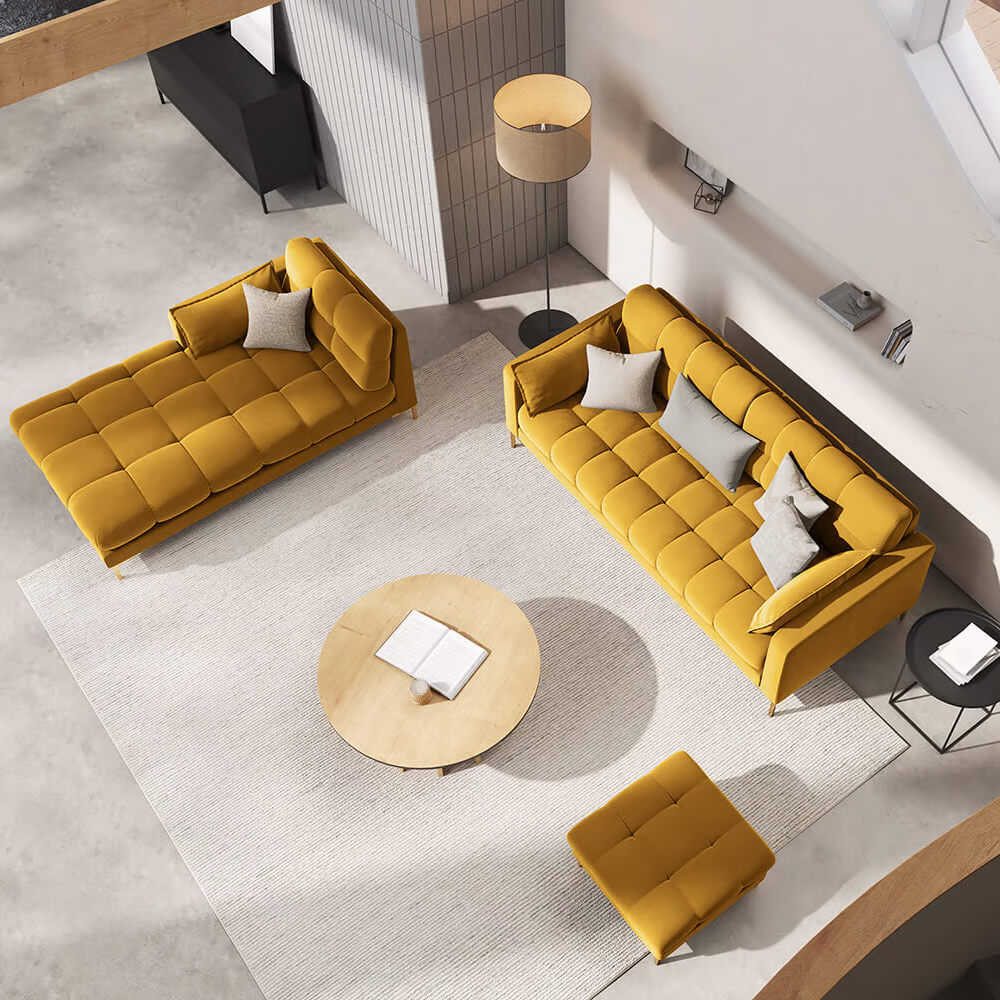 Kolekce Mamaia je jedinečná, osobitá a naplní každý interiér pozitivní energií. Prošívání na zadních opěrkách a sedácích je pečlivé, boční polštáře s ozdobným lemem dodávají pohovce ještě více pohodlí a navíc tvoří velmi dekorativní akcent. Luxusní čalounění z měkkého odolného materiálu a geometrické kovové nohy jsou esencí modernosti a elegance, která vám bude sloužit každý den. Modely Mamaia jsou extrémně odolné a pevné. Navíc vypadají skvěle v kombinaci s dalšími kousky z kolekce.